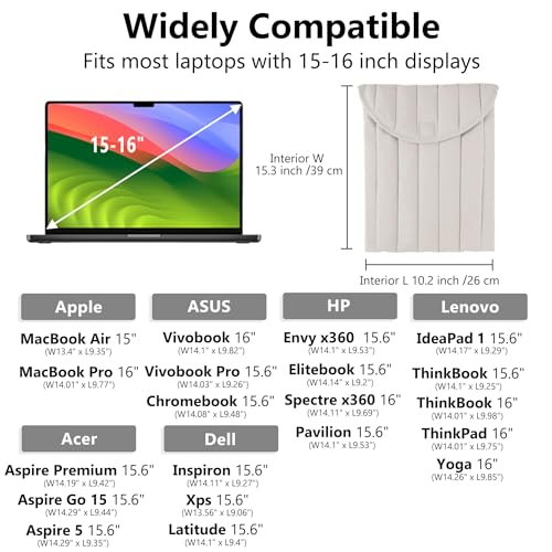 - 💻【Wide Compatibility for 15-16 Inch Laptops】Fits all 15 inch, 15.6 inch, and most 16 inch laptops: MacBook Air 15 M2/M1, Pro 16, Dell XPS, Asus, Lenovo. Perfect as a MacBook sleeve or universal computer case for men and women.