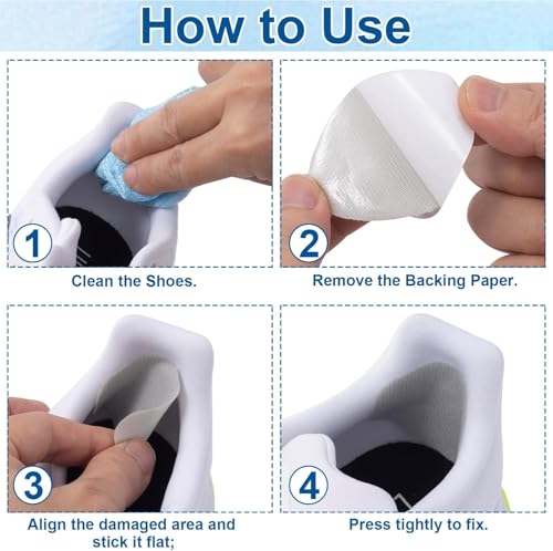 - 🎨 MULTIPLE COLORS: Includes 12 patches in black, white, and light gray (4 pcs of each color), providing options to match different shoe styles and ensure seamless repairs.