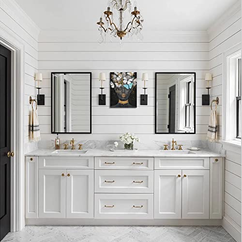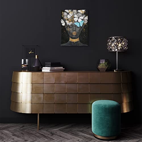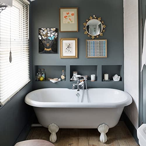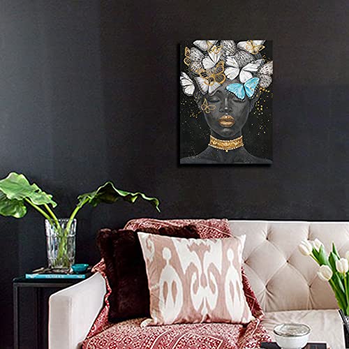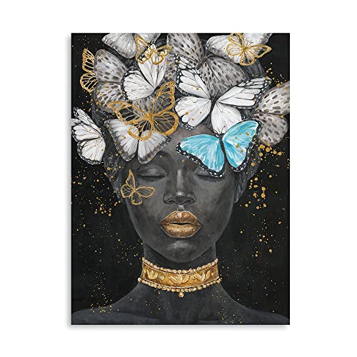B BLINGBLING - B BLINGBLING African American Woman Butterfly Picture: Black Woman Butterflies Wall Decor Canvas Painting for Living room Bathroom Office Lady Home Decorations Framed Ready To Hang 12"x16"