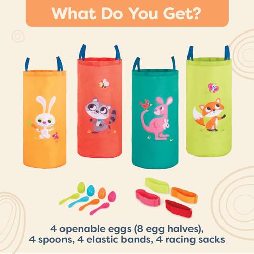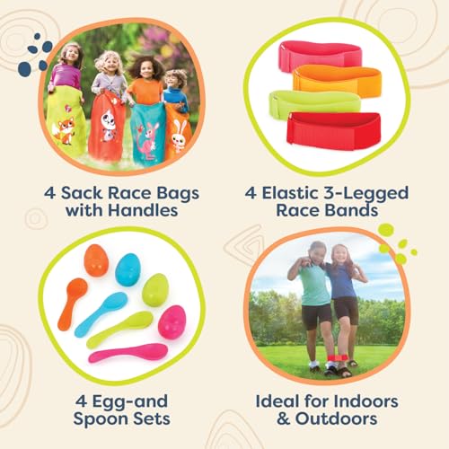 B. toys - B. toys – 3 Outdoor Games For Kids – Racing Sacks & 3-Legged Race Bands – Egg-And-Spoon Game – Birthday Party Games – 5 Years + – Outdoor Games Galore