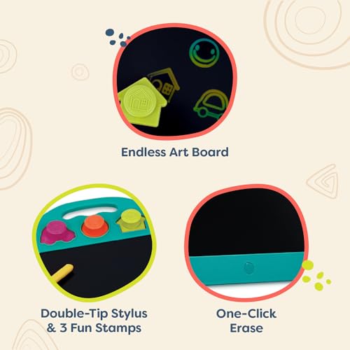 B. toys - B. toys – LCD Drawing Tablet & Pen – One-Click Erase & Double-Tip Stylus – Endless Drawing & Coloring – Fun Stamps & Color-Changing Surface – 3 Years + – Rainbow Doodler