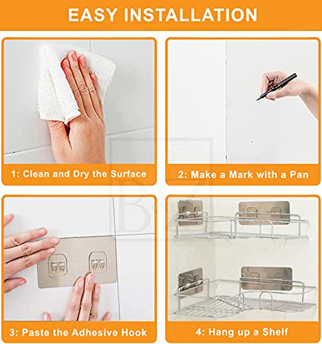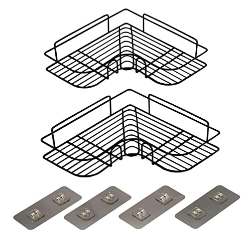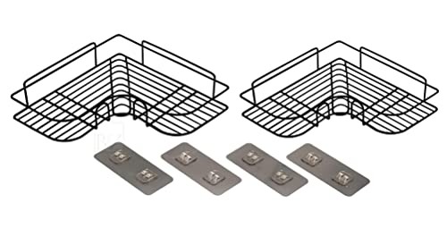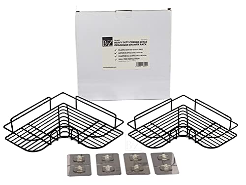 B & Z - رف زاوية للاستحمام من بي اند زي من البلاستيك المطلي، مقاوم للصدأ ولا يحتاج إلى ثقب – مع لوحة تثبيت مجانية – طقم من 2 قطعة | (أسود)