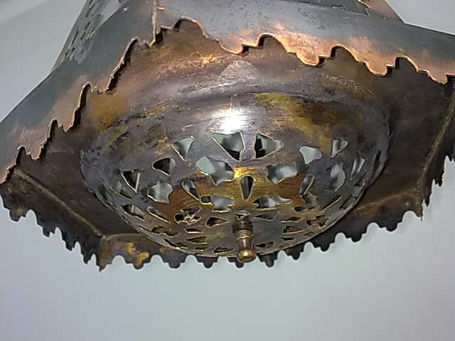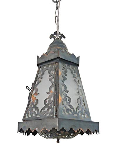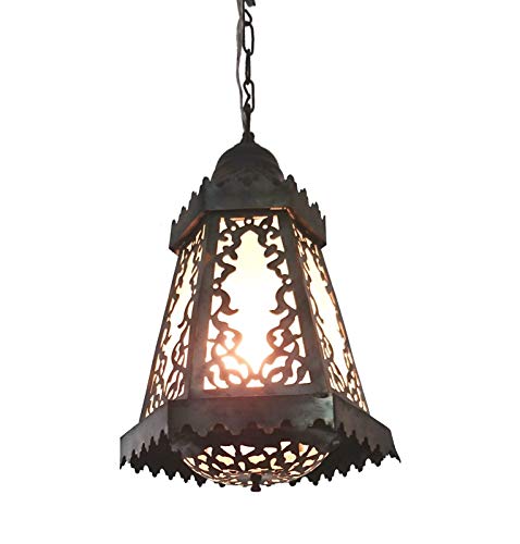 Generic - B138 Moroccan Brass Hanging Lamp — Tarnished Copper Finish, Frosted Glass Lining, Hexagonal Handcrafted Pendant — Ready for Hard-Wiring