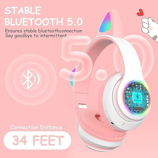 - Unique Design: Cat Ears Wireless Headphones with Multi-Color LED Light, Perfect for Children with Cute Look