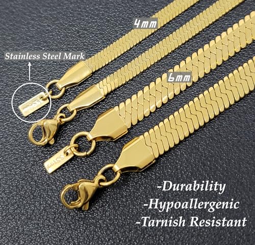 BA UNIQUE FASHION - Herringbone Chain 316L Stainless Steel 14,16,18, 20,22,24,30 inches Necklace for Men and Women in Gold, Silver Tone