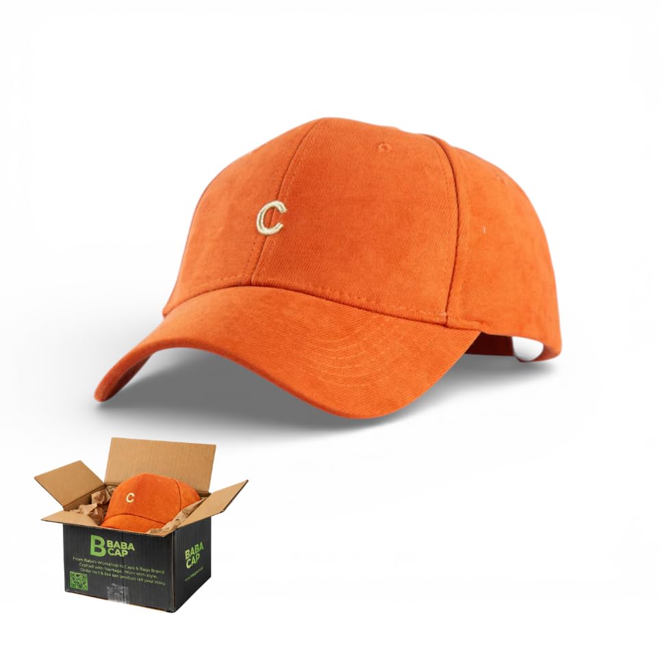 BABA CAP - Unisex Chamosite Dad Cap, Orange, Adjustable Fit, Embroidered C Logo, Casual Street Style