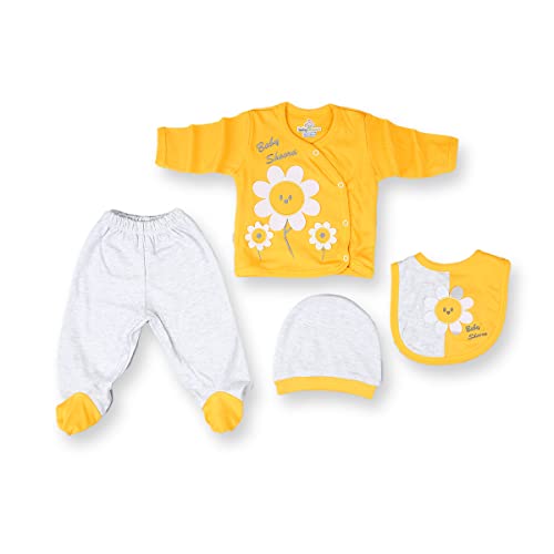 Generic - طقم بيجامة للاطفال من عمر 3-6 شهور مكون من بنطلون وتيشرت وطاقية وبيفتا - اصفر