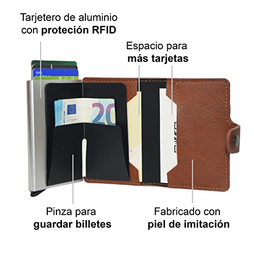 BabioKa - Metal Card Holder, Metal Wallet for Men, Leather Credit Card Wallet, Small Wallet with Security, Ridge Wallet, Leather
