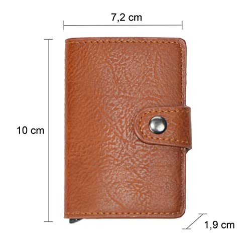 - STYLISH AND COMPACT: Our metallic card holder wallet is slim and minimalist, making it perfect for those who prefer to keep things simple and elegant. It is small enough to fit in the front pocket of a pants and fits comfortably in any pocket of a jacket or purse.
