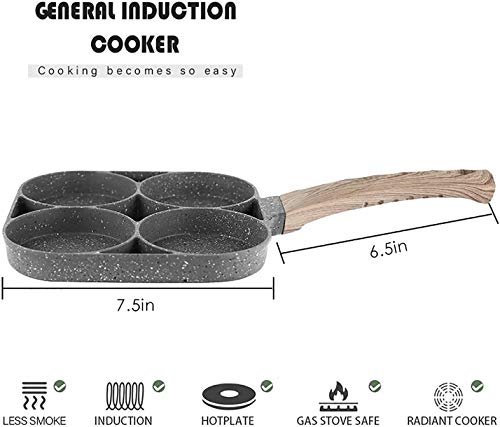 • مقلاة اومليت ذات 4 فتحات: تتميز مقلاة البيض بـ 4 مساحات تخزين لجعل الطهي سريعًا وسهلاً. يمكنك قلي 4 بيضات أو برجر وما شابه ذلك في نفس الوقت لزوجك وأطفالك.