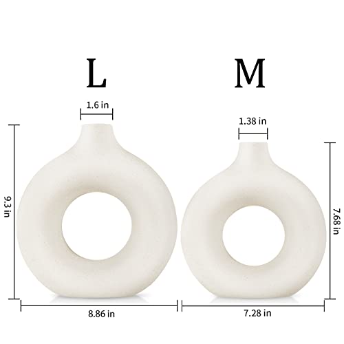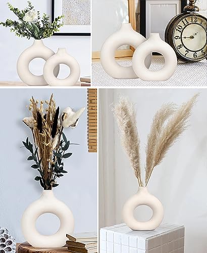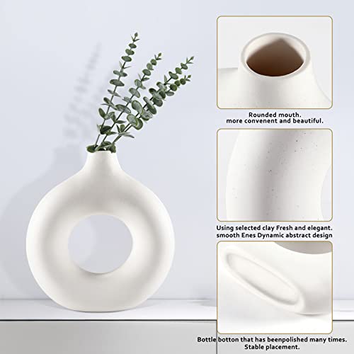 - 【White Ceramic Vase】– The donut design makes the vases for decor unique and fashionable. Different from the traditional ceramic vases, you can see the beautiful flowers in the vase through the hollowing out, which suits many room decor and home style - rustic, aesthetic, modern, minimalist, and unique.