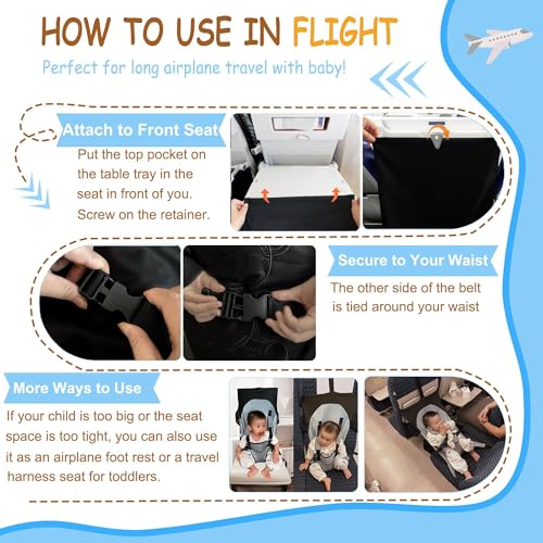 NALACAL - سرير اطفال بالطائرة، اساسيات سفر للاطفال للطيران، سرير محمول بمسند قدم ممتد للاطفال الصغار (16 × 28 انش، رمادي)