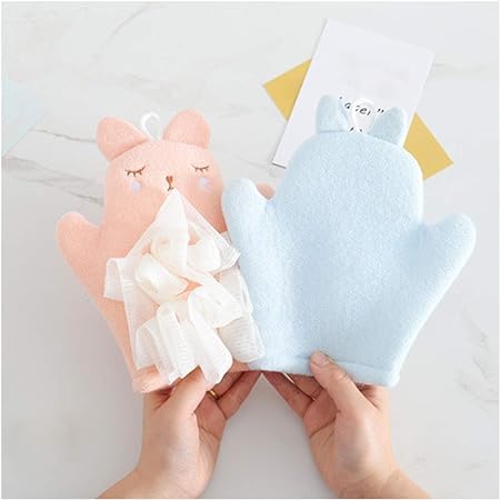 Generic - إسفنجة استحمام للأطفال، قفاز استحمام بتصميم حيوانات لطيفة، ليفة إسفنج ناعمة تقشير الجسم للأطفال الصغار، عدد 2 قطعة بينك