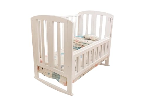Generic - سرير بيبي مصنع من الخشب الزان الاحمر - 3 مستويات يمكن ضمه لسرير الام لون ابيض+ 4 قطع جوانب وملايه ومخدة ومرتبه هدية مجانية