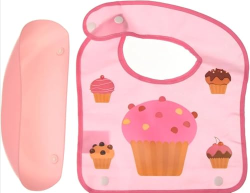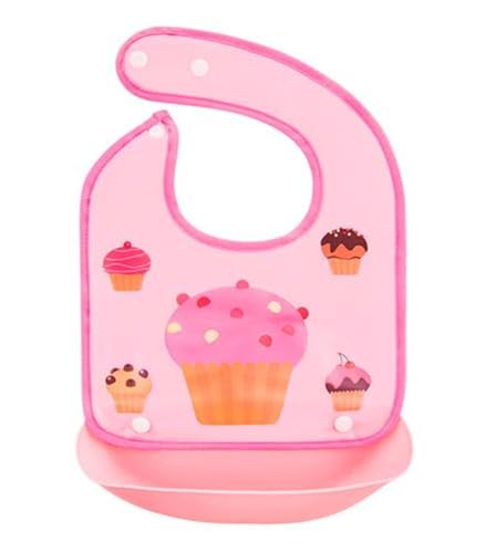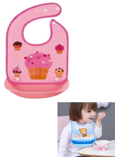 Generic - Baby Bib with WaterProof Waxed Bib with Silicone Pocket Detachable from Bib for Easy Cleaning - Pink