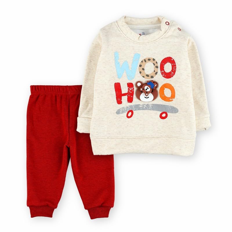 Generic - Baby Boys Melton Cotton Pajama Cozy Beige & Red for Winter, Size 0-3 months
