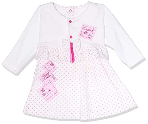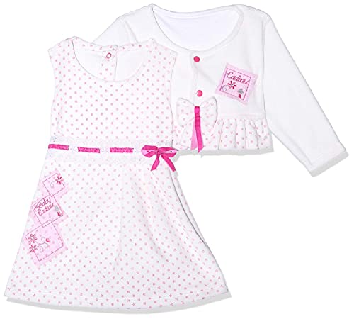 Baby Cadeau - فستان قطن قطيفة بدون اكمام بنقشة ورود وفيونكة عند الخصر مع بوليرو بأكمام طويلة للبنات من بيبي كادو - ابيض وبينك، 0 - 3 شهور