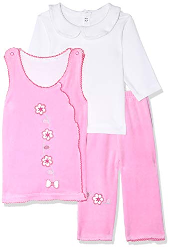 Baby Cadeau - Cotton Velvet Two Tone Floral Embroidery Top with Pants Clothing Set for Girls - White & Pink, 3 Pieces, 3 - 6 Months