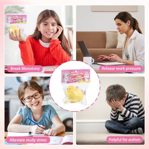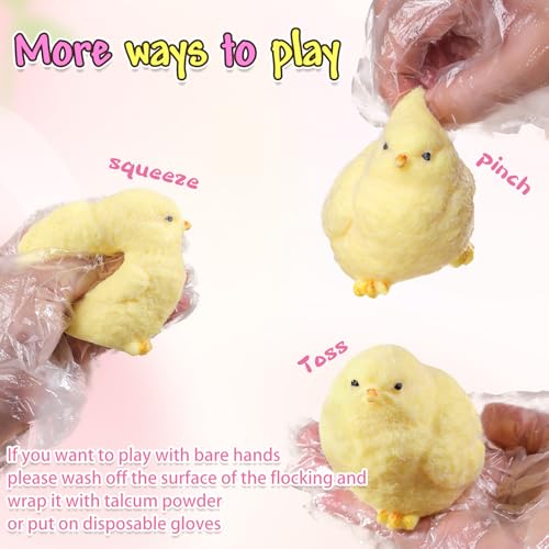 - HIGH QUALITY MATERIAL Made of durable TPR, this baby chicken squishie is designed to withstand repeated squeezing without breaking. The included OPP bag ensures easy storage and protects the toy from loss or dirt.