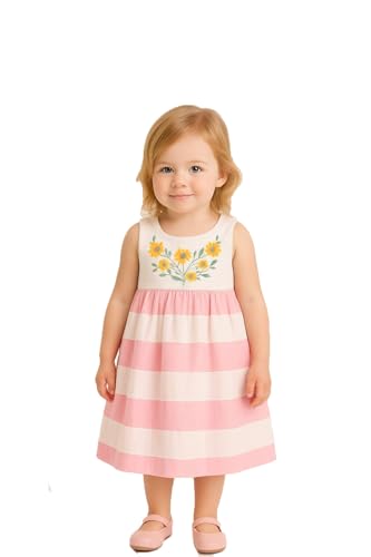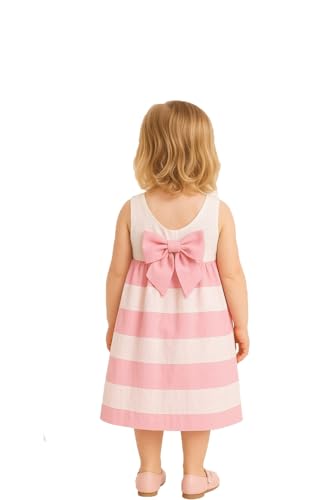 Generic - فستان قطن للبنات البيبي - 100% قطن بوبلين مع جزء أمامي مطرز وفيونكة من الخلف، متوفر بمقاسات لعمر 3 شهور إلى 4 سنوات، متوفر بلونين لون وردي / أبيض وأرجواني / أبيض (من توماس كيدز اند سبليندور)