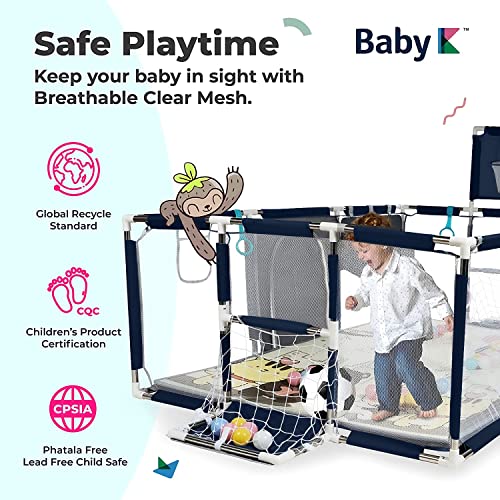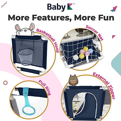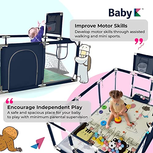 BABY K - ساحة لعب للأطفال مع سجادة - ساحة لعب مبطنة لأطفال بيبي وصغار مع حلقة كرة سلة وشبكة لكرة القدم - ساحة لعب بيت كرات ببوابات للاستخدام في أماكن داخلية وخارجية من بيبي كيه، (أزرق، 1.8 م × 1.2 م ×66.04 سم)