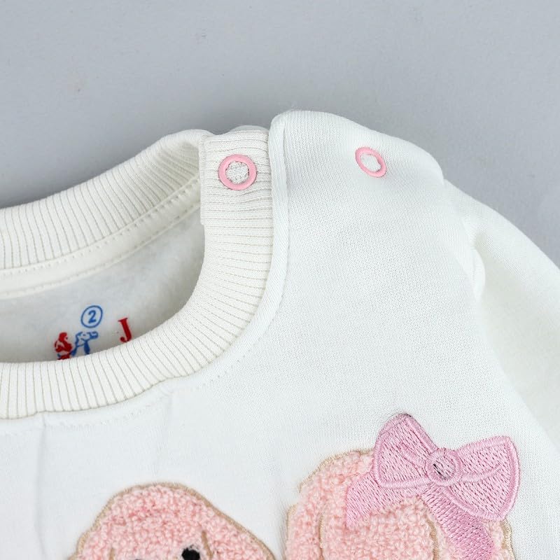 Generic - بيجامة قطن ميلتون للأطفال البيبي: دافئة بلون أبيض ووردي للشتاء، مقاس 3-6 أشهر