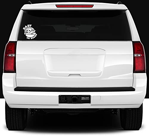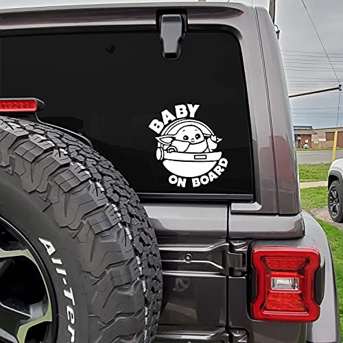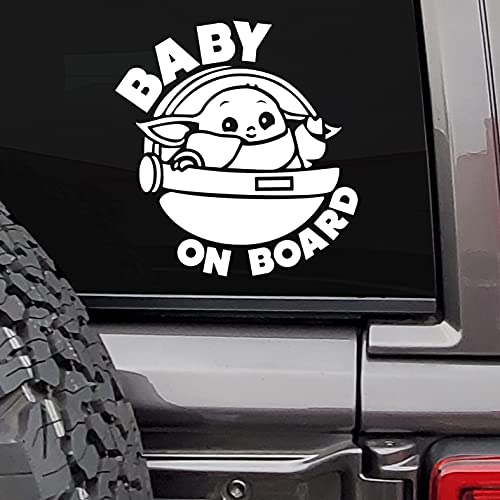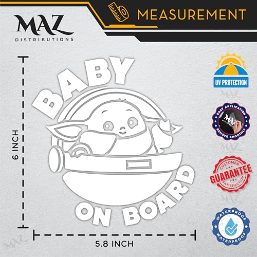 MAZ Distributions - Baby On Board Sticker for car Baby Yoda Space Ship Decal Sticker Funny Sticker | Cars SUV Trucks Vans Walls Laptop Decal Vinyl Stickers | 6 X 5.8 Inch | White | MAZ-393