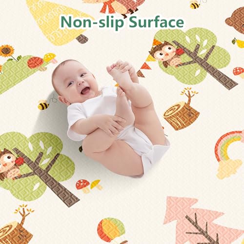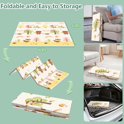 Poudee - Baby Play Mat Foldable 74x50 Inch, Waterproof and Non-Slip Playmats, Safe Foam Playmat, Playpen Mat, Reversible Portable Baby Floor Mat for Infant and Toddler, Patterns Available on Both Sides