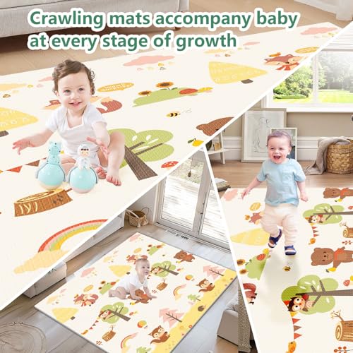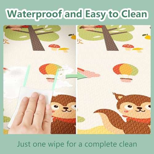 - 【EASY TO CLEAN】The surface of this crawling mat is 100% waterproof, so water and milk spills won't soak through, and you can simply wipe it clean with a damp cloth to keep it as clean as new. The waterproof layer also protects the colourful patterns from fading, ensuring long term durability.