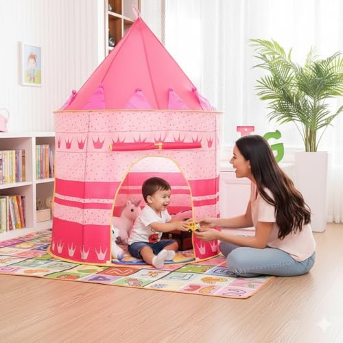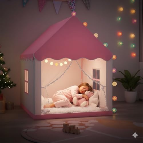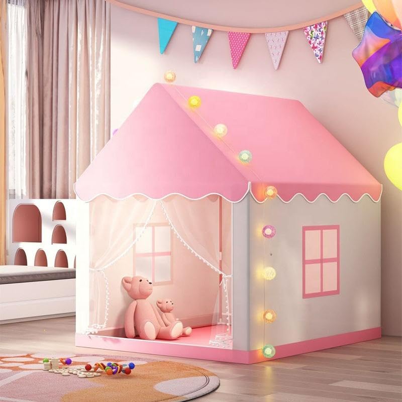 Generic - خيمة لعب أطفال على شكل منزل مع إضاءة LED ملونة وستائر شفافة، قابلة للطي، للأطفال من 12 شهر إلى 6 سنوات