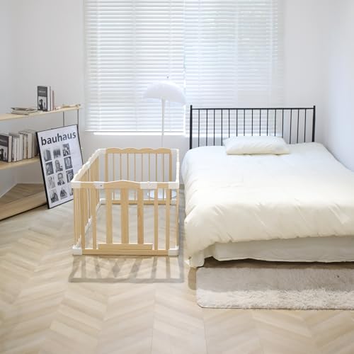 - 【Natural Wooden Material】: The baby playpen is made of New Zealand Radiant Pine, thicker and stronger, no need to paint, this wooden playpen does not contain sharp edges or chemicals, so you don't need to worry about your baby getting hurt.Smooth surface is easy to clean, just wipe it with a damp paper towel, no need to worry about baby's food residue.