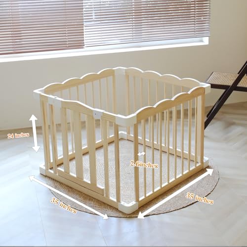KOCINI - Baby Playpen - Large Wooden Playpen for Toddlers, Adjustable with Locking Gate, Easy Assembly, Multiple Shapes, Activity Center (35 * 35 * 24 Inch)