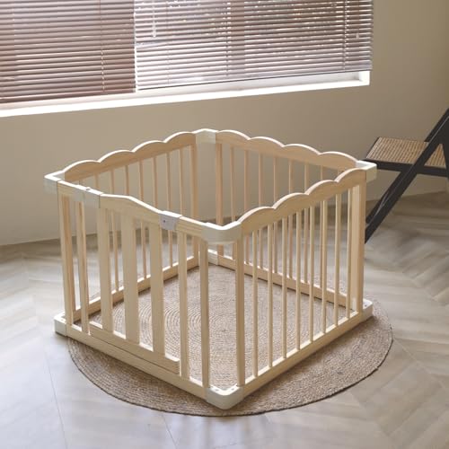 - 【Unique Design】Wooden playpen has a unique design, wood grain and curved design make the baby enclosure look more beautiful.Equipped with connectors, it is convenient to assemble, disassemble and store. It will not take up too much space, keeping your home environment neat and beautiful.