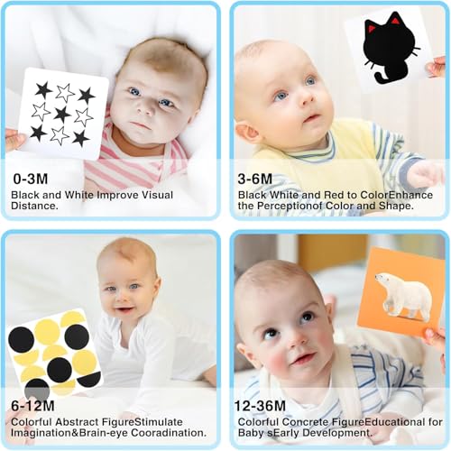- ☺تمرين تركيز العين: في المرحلة الأولى من فهم الأطفال البيبي للعالم، تساعد بطاقاتنا البصرية على تطوير رؤية الطفل الرضيع من خلال صور عالية التباين، مما يعزز قدرتهم على تحديد الأهداف وزيادة تركيز أعينهم. ويُوصى بألعاب التعليم المبكر المناسبة للأطفال حديثي الولادة من عمر 0 إلى 36 شهرًا.