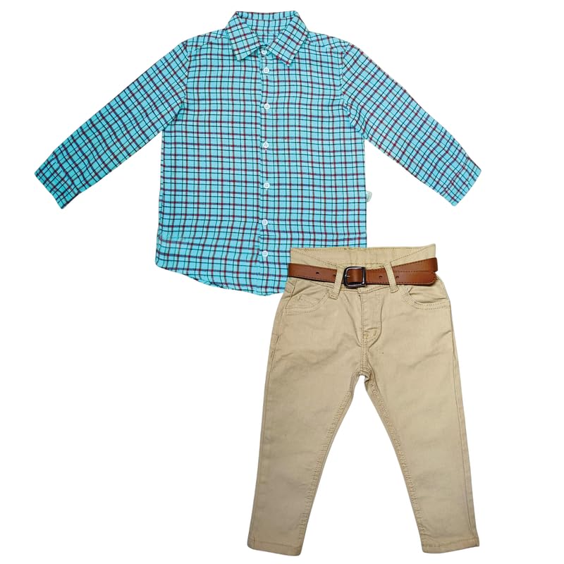 Baby Shoora - Baby Shoora Boys Cotton Long Sleeves Shirt,Pants&Belt Long Sleeves Shirt,Pants&Belt (pack of 1)