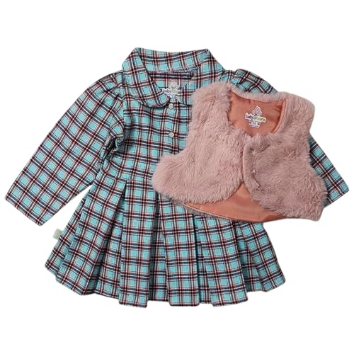 Baby Shoora - Baby Shoora Cotton Set Of 2 Pieces Long Sleeves Dress&Sleeveless Jacket Printed For Girls-Multicolor-6-12Month