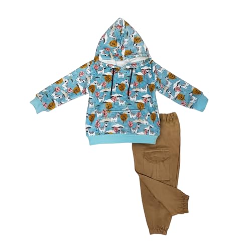 Baby Shoora - Baby Shoora Cotton Set Of 2 Pieces Long Sleeves Hooded Sweatshirt&Pants Printed Zebra For Boys-Multicolor-3-4Year