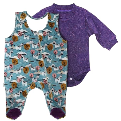 Baby Shoora - طقم سالوبيتات مكون من سالوبيت بكباسين بدون أكمام وسالوبيت بكباسين بأكمام طويلة بطباعة حمار وحشي للبنات من بيبي شورا - متعدد الألوان - مقاس 3 - 6 شهور - قطعتين
