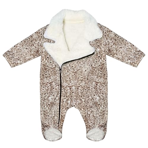 Baby Shoora - سالوبيت فرو بكباسين وأكمام طويلة للأولاد حديثي الولادة إلى 3 أشهر من بيبي شورا، بني