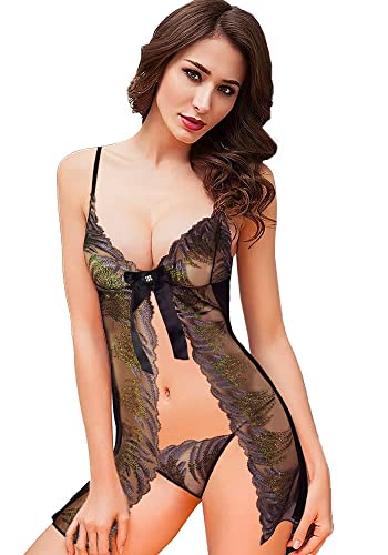 Generic - BabyDoll and Panty Open Front Lingerie Black