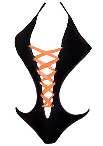 Generic - BabyDoll Black Leather Restaurant Orange Satin Lingerie
