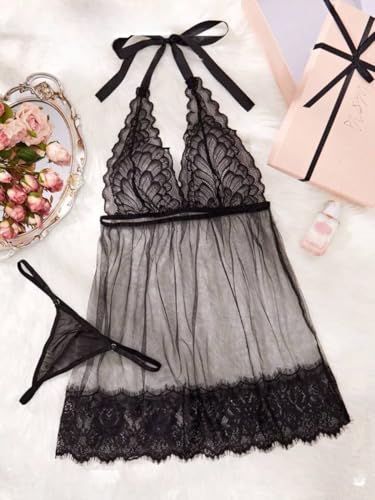 Generic - ملابس نوم لانجيري قميص نوم شفاف اسود قصيربيبي دول مثير جدا