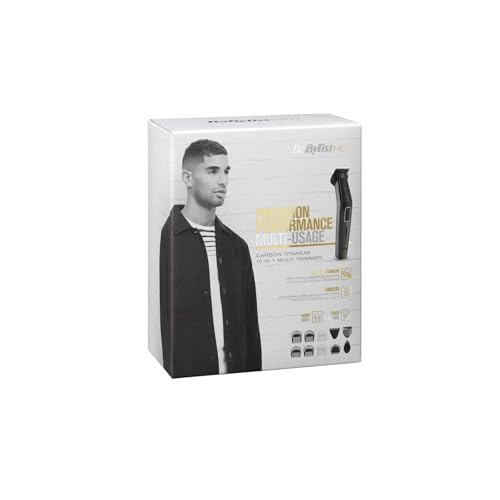 BaByliss - BaByliss 10-in-1 Multi Grooming Beard Trimmer for men, Carbon Titanium Cordless Trimmer Kit with 34 mm Width Blades, Nose/Ear/Body Attachments and Washable heads shaver, 2 Year Guarantee - MT727SDE