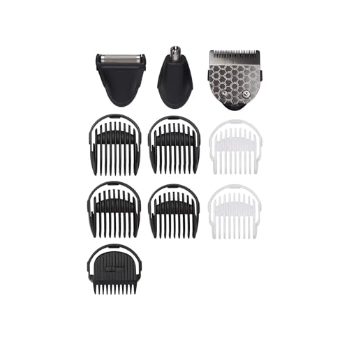 - Range of Accessories: Carbon Titanium Blade. Rotary Nose/ Ear attachment. Foil Shaver Attachment. Stubble Comb Guide (1mm -3.5mm). 4x Beard Comb Guide (5-8mm). 2x Body Comb Guides (3-4 mm). Storage Pouch