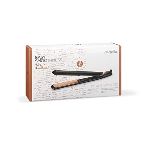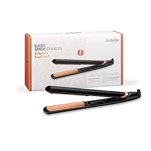 BaByliss - مكواة فرد الشعر بألواح سيراميك برونزية بدرجة حرارة تصل الى 235 درجة مئوية من بيبي ليس، مقاس 28 ملم، اسود - ST598E