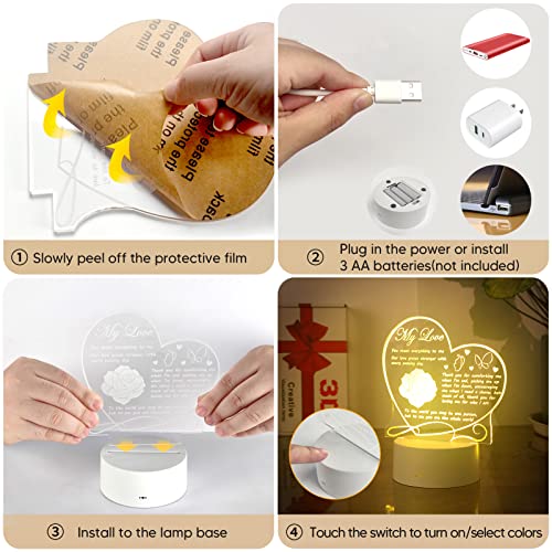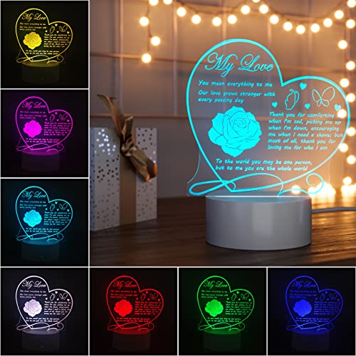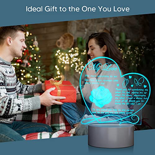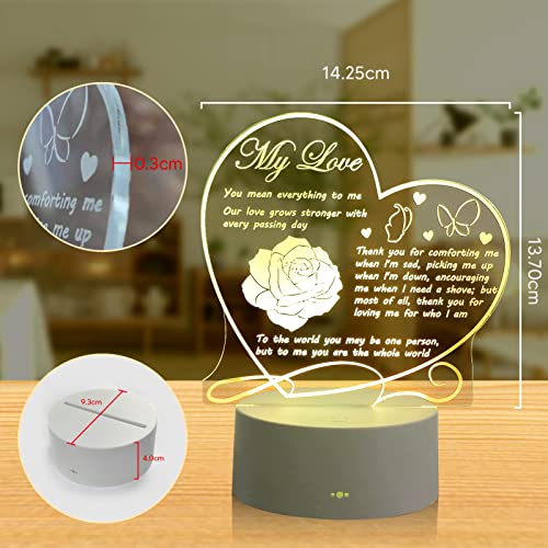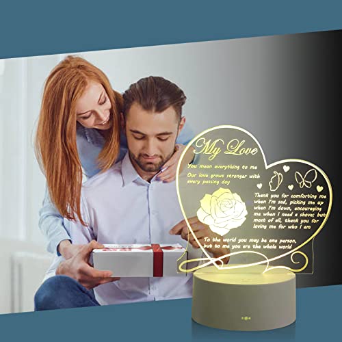 - 【هدية جميلة لحبك مع نص الحب والمودة】منقوش بكلمات محببة تذكرك بمدى حبك لزوجتك / زوجك / صديقك / صديقتك عندما يضيء مصباح الوهم ثلاثي الأبعاد. هذا المصباح الليلي LED هو أفضل هدية للتعبير عن حبك في الأيام الخاصة مثل أعياد الميلاد والكريسماس وعيد الحب والذكرى السنوية للزفاف والذكرى السنوية لليوم الذي تقابل فيه بعضكما البعض، إلخ.