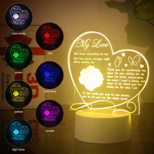 Babyliya - مصباح LED ليلي للهدايا للصديقة - الصديق - الزوجة - الزوج - الازواج وهمي رومانسي منقوش ثلاثي الابعاد للخطوبة والذكرى السنوية للزفاف واعياد الميلاد والكريسماس وعيد الحب أبيض