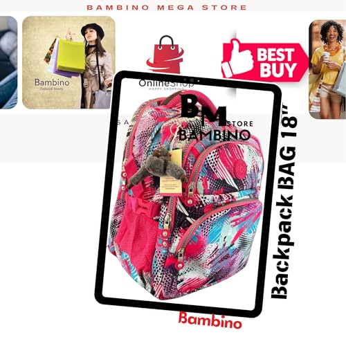 Generic - شنطة ظهر كيبلين للمدرسة والجامعة - مقاس 18 انش مقاس 45 × 34 × 18 سم (زهري متعدد الالوان)