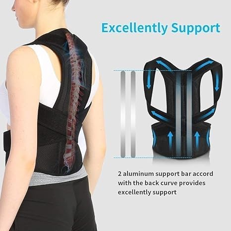 Generic - Back Brace Posture Corrector Neck Shoulder Support Belt Lower Pain Relief XL for Men Women Black Posture Corrector