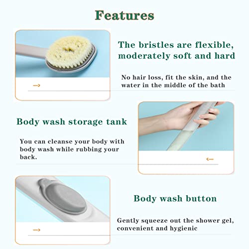 Vecacosic - Back Brush Long Handle for Shower 15 in Long Handle Liquid Bath Brush Storable Body Wash Family Essentials Bath Massage Cleaning Brushes with Soap Dispenser for Exfoliation Scrubbing Shower Green